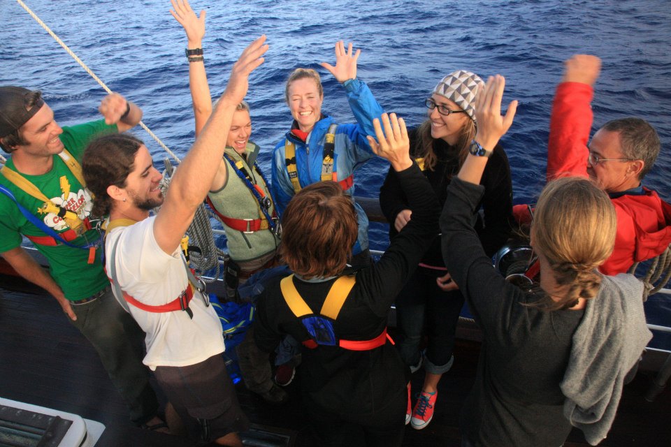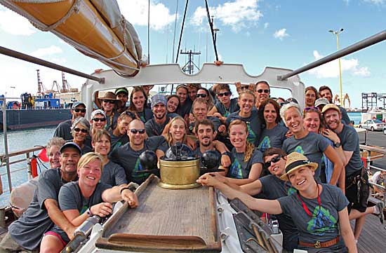 The whole crew of Plastics @ SEA 2012: North Pacific Expedition just after making landfall in Honolulu, Hawaii. (Photo by Jon Waterman)
