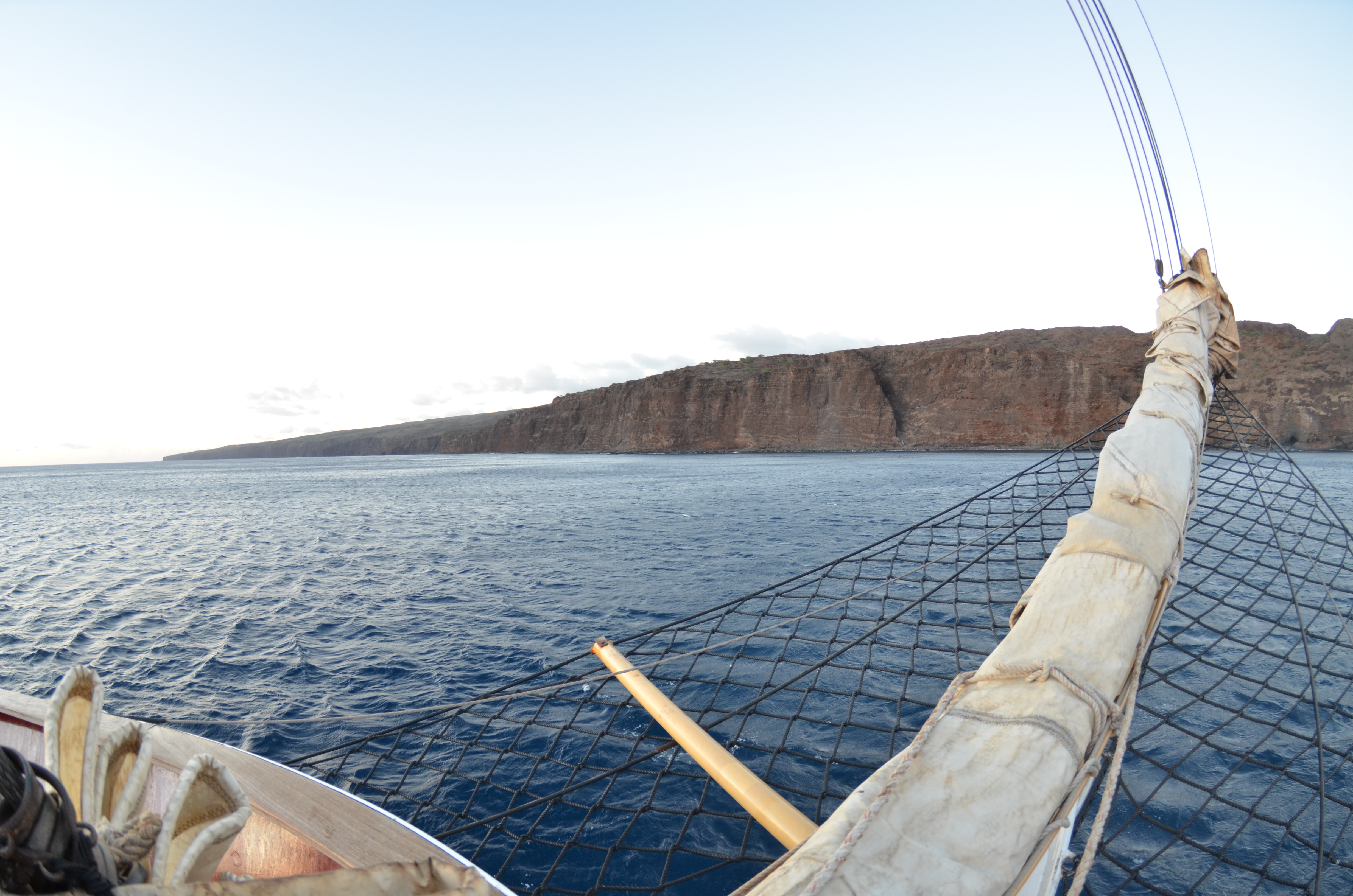 After 32 days at sea with no land in sight, we finally sailed into the Hawaiian islands from the NE and made landfall on the west coast of the Big Island at dusk on November 5th. As I remembered from my previous sailing adventures, setting foot on dry (and more importantly stable!) land after living on a constantly moving–sometimes violently–object is something you never forget. It was a great feeling, and the first steps that my watch mates and I took onto the Hawaiian shores just so happened to be at the very spot where Captain James Cook was murdered in 1779. Not the most cuddly of historical sites, but an important one nonetheless. Fortunately for us, we were not fleeing from aggressive natives but were instead running freely up to the lookout point and then snorkeling gleefully in cool, inviting waters thick in a rainbow assortment of corals and reef fish. It was an impressively healthy system, and it was an absolute pleasure of a stop over. We even got a surprise (and much appreciated) swim call from the captain–finally, we got to jump into the beautiful waters that we had been sailing through for over a month!