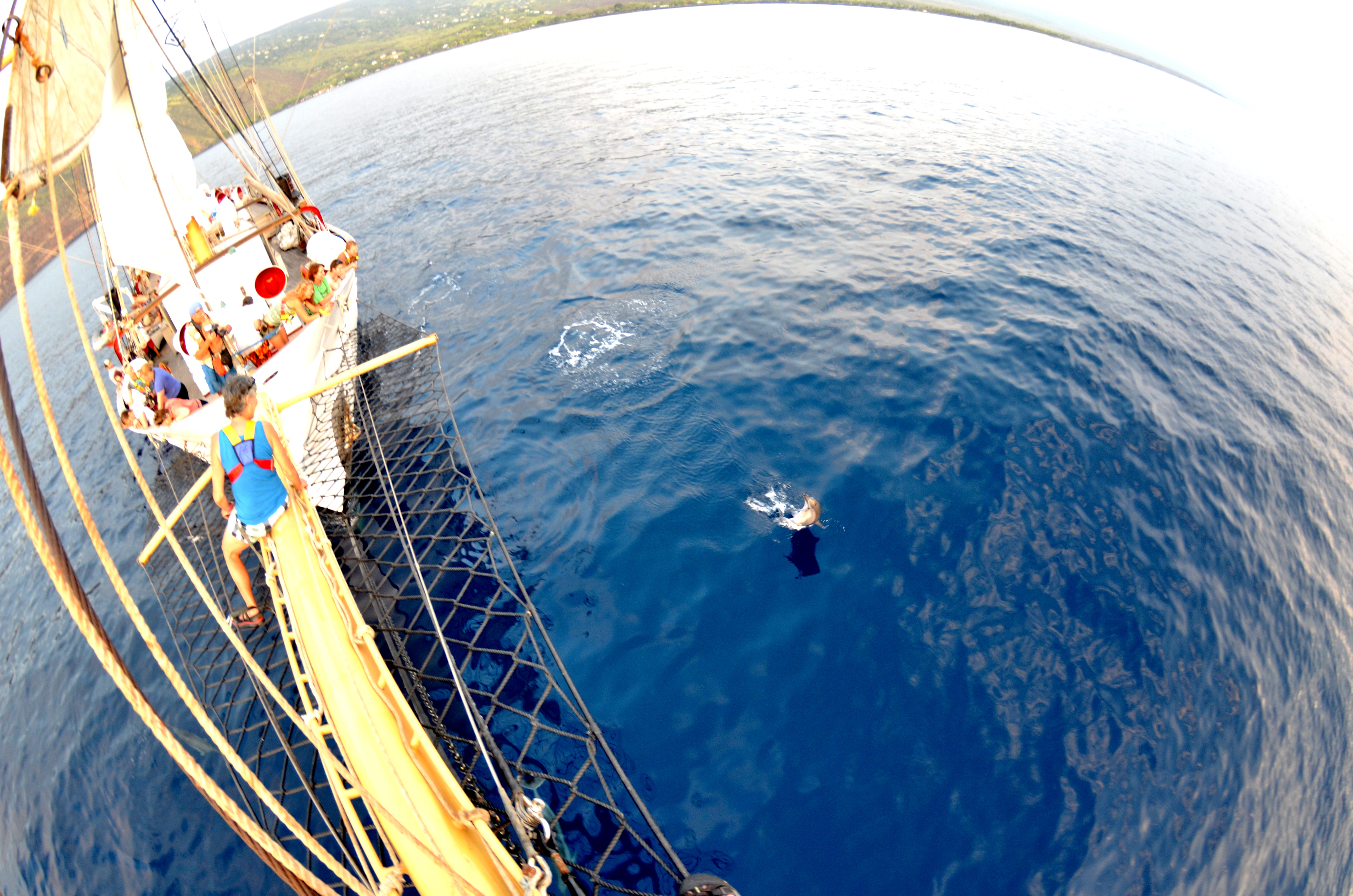 Swim call!: We were rewarded by the Captain with a rare swimming opportunity while at anchor in Kealakekua Bay, Hawaii. Photo by Marina Garland